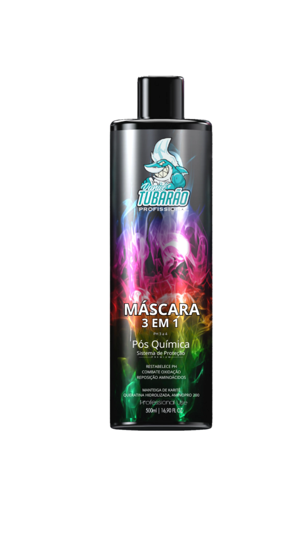 A MÁSCARA DE TRATAMENTO 3 EM 1 DANIEL TUBARÃO é indispensável para cabelos descoloridos, platinados, loiros e grisalhos, danificados, alcalinos e oxidados. Sua intensa hidratação age nos fios equilibrando o PH, trazendo mais força e proteção para os cabelos. Sela as cutículas e promove a reparação dos fios, tornando-o mais saudável e macios. Sua fórmula neutraliza tons amarelados indesejados, deixando seus cabelos mais brilhantes e sedosos. A MANTEIGA DE KARITE é um dos componentes-chaves da MÁSCARA DE TRATAMENTO 3 EM 1 DANIEL TUBARÃO. Além da hidratação intensa, a manteiga de karité forma uma película protetora em volta da fibra capilar, evita a perda de água dos fios, proporcionando uma intensa nutrição, garantindo que se tornem saudáveis e resistentes. Também contém em sua fórmula a QUERATINA HIDROLIZADA e AMINO PRO 200, dois ativos poderosos que contribuem para a restauração e reconstrução da fibra capilar. A queratina hidrolisada repõe a massa capilar, controlando a elasticidade. Proporciona ação anti ressecamento, deixando os cabelos resistentes a quebra, macios, maleáveis e com brilho, penetra nos fios, preenchendo as áreas danificadas e fortalecendo sua estrutura interna. Já o Amino Pro 200 um blend complexo com 19 aminoácidos que recupera a rigidez dos cabelos quimicamente tratados, danificados e frágeis, pois proporciona fortalecimento da estrutura, hidratação e reparo da superfície capilar. Também é indicada para tratar os fios que sofrem exposição a altas temperaturas como secador, chapinhas ou sol, água do mar e piscina. Beneficios: Equilibra o PH, acidificante, sela as cutículas, neutraliza tons amarelados.